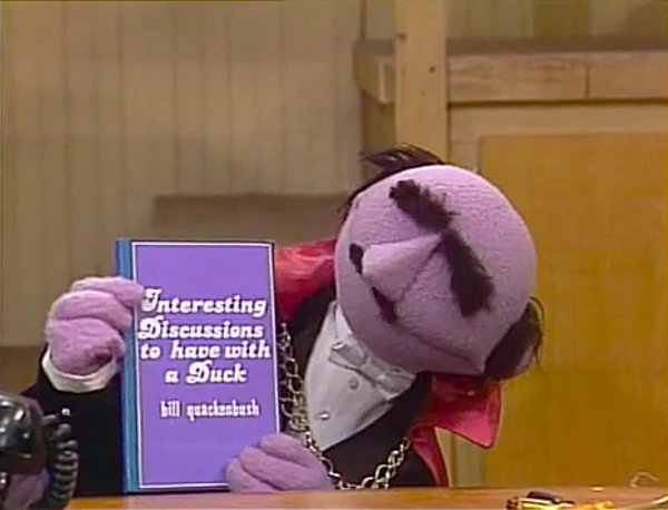 SCENE 4 | Mumford returns from the library with the only book he could find for the time being - Interesting Discussions to Have with a Duck. He leaves to keep searching while Big Bird consults the book, coming across a chapter about rhyming. The book suggests finding rhymes for the word "back," and naturally Maria can only come up with one word: quack! |