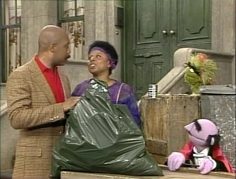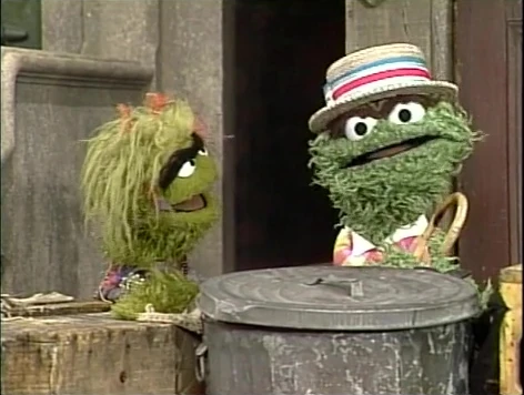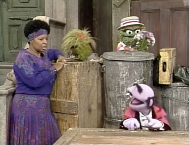 SCENE 2 | Susan can't stand dealing with the Grouch Gordon and goes to check on Mumford. Just after, Brian drops off a bag of trash, which Gordon stakes a claim on to Oscar's frustration. He begins to rummage through it and finds some discarded letter M cards (a favorite letter to Grouches since it begins "mud"). Grundgetta, becoming attracted to this new Gordon, joins in as they dig through the bag. Oscar fears that he may lose his girlfriend and runs off to aid Mumford. |