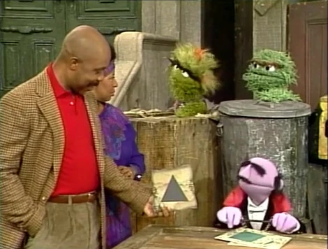 SCENE 1 | Oscar and Grundgetta prepare to watch the Amazing Mumford perform a Grouch magic trick he learned from the Great Trasherini. Gordon, though he is about to leave with Susan on a date, agrees to assist in the trick as Mumford changes lovely-looking shapes into Grouchy ones. His attempt at changing a circle seems to fail, until they see the trick has made Gordon a Grouch instead! Mumford heads to the library to find something to reverse the trick, while Oscar and Grundgetta get acquainted with the new Gordon. |