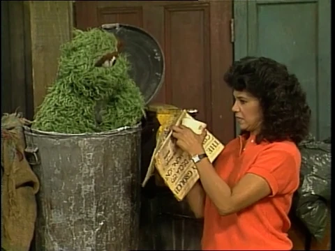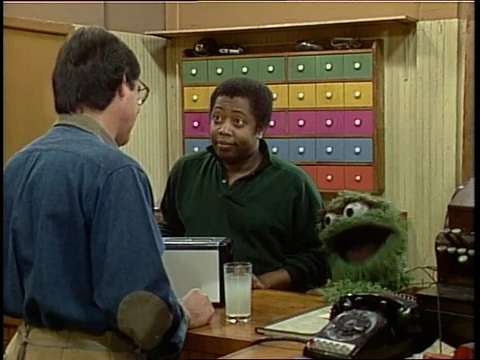 SCENE 1 | Maria disposes of some trash on a nice, quiet morning on Sesame Street, when Oscar's trash can loudly emits the sound of an alarm clock. Oscar, annoyed by the sound, tosses it from the can and Maria catches it. She asks why he'd try to get rid of it and explains why its useful. Oscar theorizes that if it didn't go off, he'd get a good night's sleep, feel rested, and get to do various tranquil activities. He continues to say that it would leave him having done nothing rotten today, so he takes back the clock. |