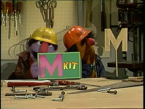 Muppets | Ernie and Bert: Ernie's Gadget — Grover watches as Ernie loads various things into a machine that start with M and N. (First: Episode 1201) |