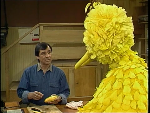 SCENE 5 | Big Bird finds Luis slicing up a mango, a fruit he's never heard of before. He doesn't think he'll like it at all despite Luis' goading. Luis tends to a quick phone call and finds Big Bird tried a mango slice and liked it... only he liked it so much, he ate the whole thing. In return, Big Bird offers him some birdseed brownies. |
