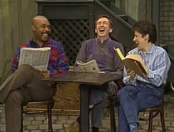 SCENE 2 | The Count (in voiceover) counts three people reading: Gordon reading a newspaper, Bob reading a magazine, and Linda reading a book. He continues his narration and counting as all three of them begin to laugh hysterically at what they're reading, and decide to swap. They stop laughing while reading one another's books, but once they switch back they start laughing again. |