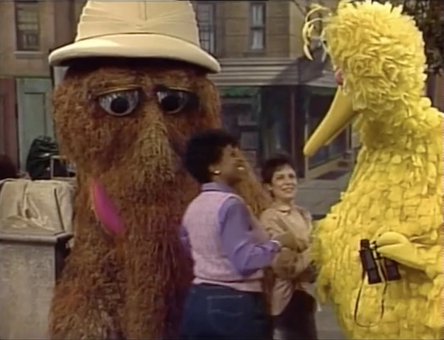 SCENE 1 | Big Bird and Snuffy pretend to explore Sesame Street, imagining it's their first time seeing it. They observe an "umpadumpus tree," meet some friendly native "Sesame Streetians" speaking "Sesamese" and attempt to communicate with them and learn their customs, and encounter a wild animal (Barkley). |