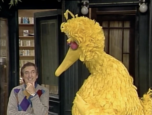 SCENE 2 | Big Bird wants to thank Bob for the game by singing a song, but has some trouble coming up with the lyrics. Bob suggests he just sing for inspiration; when he still can't come up with the words, Bob suggests that Big Bird repeat what he says, only by singing instead of speaking. Again, Big Bird takes the instructions too literally and follows Bob around, singing everything he says. |