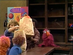 SCENE 1 | Telly learns from David and Gina that today, Hooper's Store is having a sale on balls, crayons. and hats. As Telly worries over what he should get, a pair of lads buy everything on sale. Telly decides what he wants just as everything runs out. He then orders what he wanted in the first place, a glass of milk... or should he switch to juice? |