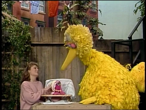 SCENE 2 | Gina is babysitting Natasha when Big Bird arrives, wishing to use the baby in a talk on subtraction. Gina states babies can't subtract, but Natasha demonstrates by knocking her blocks over and flinging her food away. |