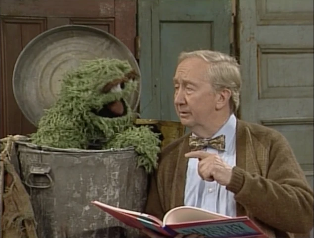 SCENE 2 | Oscar the Grouch has asked Uncle Wally to recite a nursery rhyme - "Little Miss Muffet" to be exact, as Oscar loves the ending. However, as Uncle Wally recites it, he keeps going off on various tangents before reaching the ending (including one about his friend Charlotte). After restarting the story every time Oscar yells at him, he finally finishes the poem, but Oscar refuses his offer to read it again. Maria announces the sponsors. |