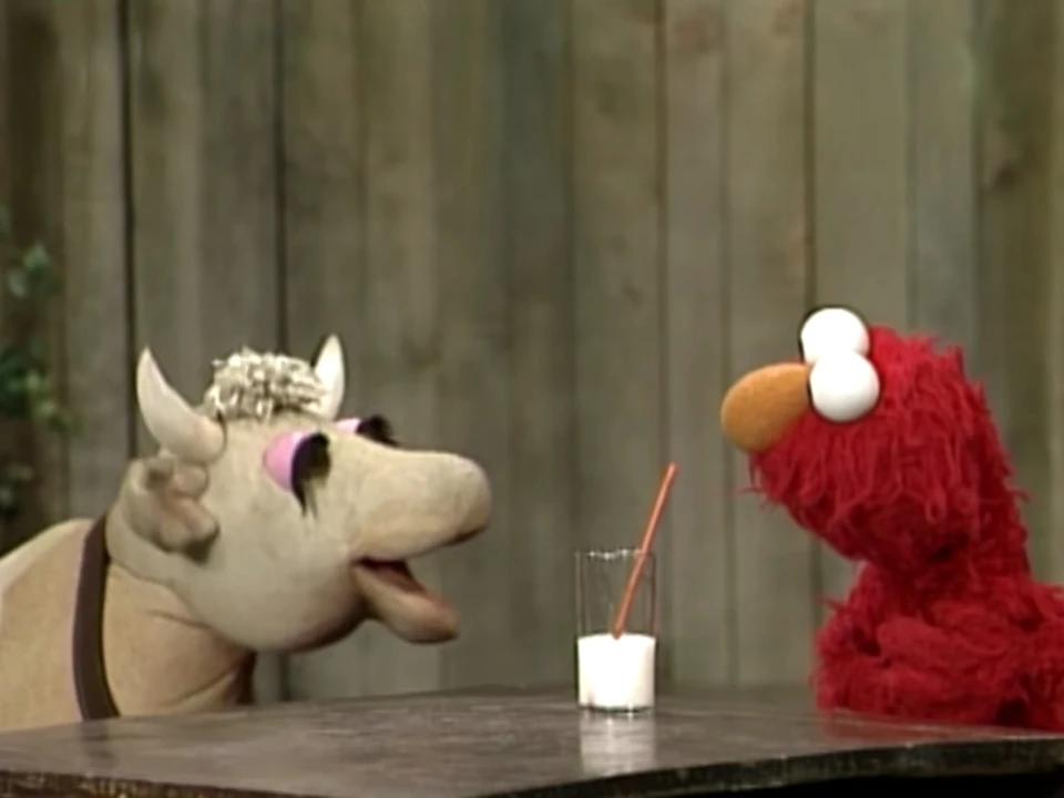 SCENE 1 | Gladys the Cow sees Elmo sipping down a glass of milk. Gladys begins boasting about milk, what gets made with it and where it comes from - cows like herself. She admits she merely likes talking about herself. Elmo tries doing the same, but Gladys cuts him off and goes to find someone else to brag to. |