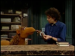 SCENE 4 | Buster asks Susan, Bob, and Kelly Ann for a favor, but they're too busy. Lucy asks him what's wrong and he says that he wants to properly thank Linda for earlier, but he can't sign with hooves. Lucy offers her services, knowing sign language. Just as Buster begins, Linda tells him to wait - she needs her hands at the moment to have her lunch. |