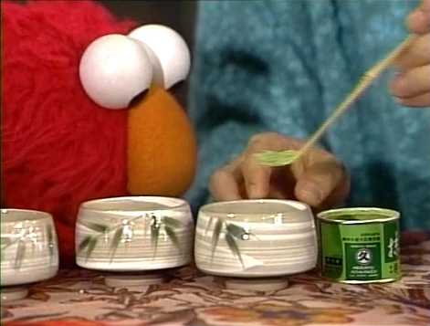 SCENE 2 | Hiroshi shows Elmo how people traditionally serve tea in Japan. Bob teaches Elmo to say "Domo arigato," which means "thank you very much," and Bob comments how he feels as if he were back in Japan. |