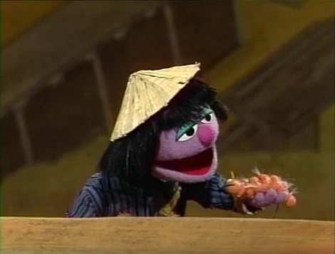SCENE 4 | Hiroshi prepares a story for everyone - including Oscar and Slimey - called Umeko and Kuwa. In the story, some Japanese Anything Muppets mock a young girl named Umeko for having a worm for a pet. When the annual festival arrives, Umeko is without a new kimono to wear. Overnight, her worm friend Kuwa turns into a moth and has her use his cocoon for silk for a new kimono. At the festival, everyone is amazed at her new outfit. When Hiroshi finishes the story, Oscar is disgusted by the happy ending, though Slimey really liked it. |