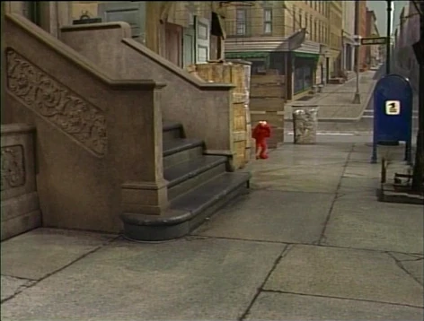 SCENE 2 cont'd | Elmo thinks Japan sounds nice and wants to go there right now, but Bob tells him that it is too far. Elmo understands how "near" and "far" works: he is near Bob, then runs to the other side of the street so he is far. To explain to Elmo that Japan is much farther than that, Hiroshi sings a song ("How Far is Japan?") about how long his airplane flight was. |