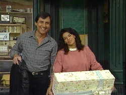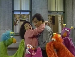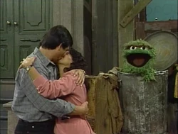 SCENE 4 | Oscar and Grundgetta have fun tossing rice at each other when Maria and Luis ask why they're so happy, as it's an emotion most Grouches prefer not to show. They believe Maria and Luis will be so busy being married, they won't have any more time to hang around Sesame Street. The couple assures them that they will have plenty of time to be his friends and hang around his can; the only thing that will change is that they'll be even happier! |
