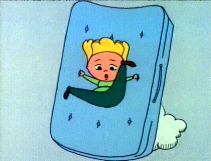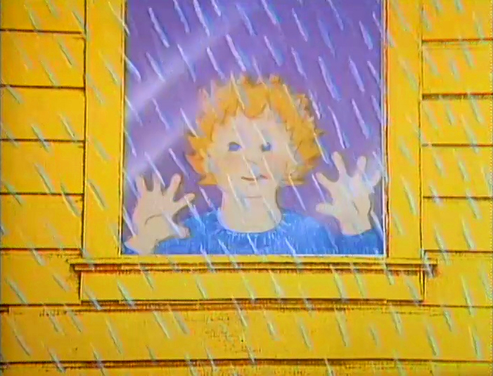 Cartoon | A boy thinks it's raining outside, so he puts on his rain gear and goes outside, only to find a sunny day. It turns out that the lawn sprinkler was near his window. (First: Episode 1627) |
