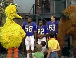 Muppets / Celebrity | Big Bird and Snuffy have a question for the New York Giants: If they are big, but Big Bird is bigger, and Snuffy is the biggest, then why are they called the Giants? (First: Episode 2359) cut from the Max version |