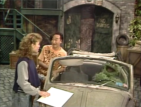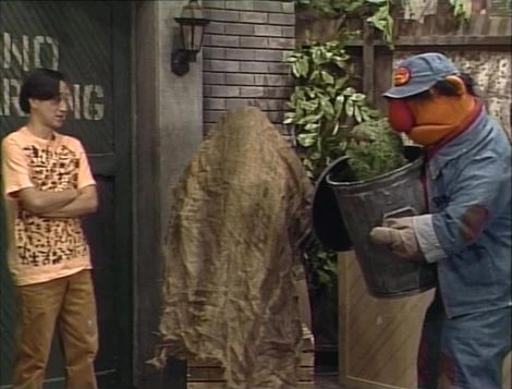 SCENE 6 | Oscar looks forward to evicting Hiroshi from the garage, when Hiroshi unveils his latest work: he's used all the trash he collected to make a sculpture of Oscar! Oscar considers it the greatest piece of Grouch art in the world, signaling Hiroshi can keep his slice of the street. Big Bird announces the sponsors. |