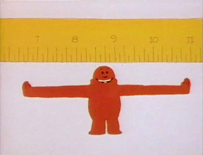 Cartoon | An orange creature shows things that measure. (First: Episode 1969) |