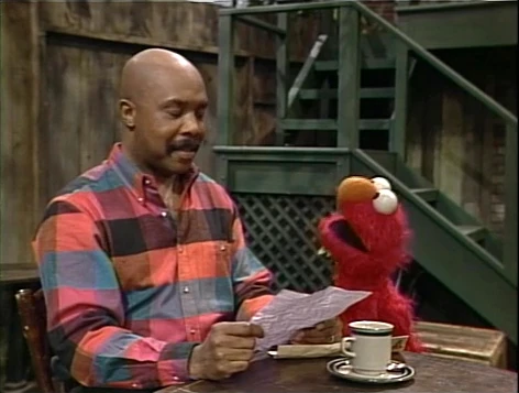 SCENE 1 | Elmo has Gordon read him a letter he received today. The letter tells Elmo that a friend will be visiting him at Hooper's Store at 4 o'clock. Before Gordon can finish, Elmo states it's from his friend Jamie Lee. He knows this because his daddy read it to him earlier. Gordon asks why he's reading it again, and Elmo replies that he loves hearing it and asks Gordon to read it again. |