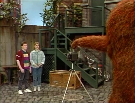 SCENE 4 | Snuffy is taking a picture of Gina and her friend Mike, but Gina fusses over keeping her hands in or out of her pockets. Mike offers a solution - they hold hands. |