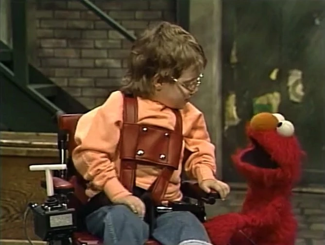SCENE 5 | Elmo invites Suzy to go on a walk with him and learns why she's in a wheelchair, which she gives him a ride in. |