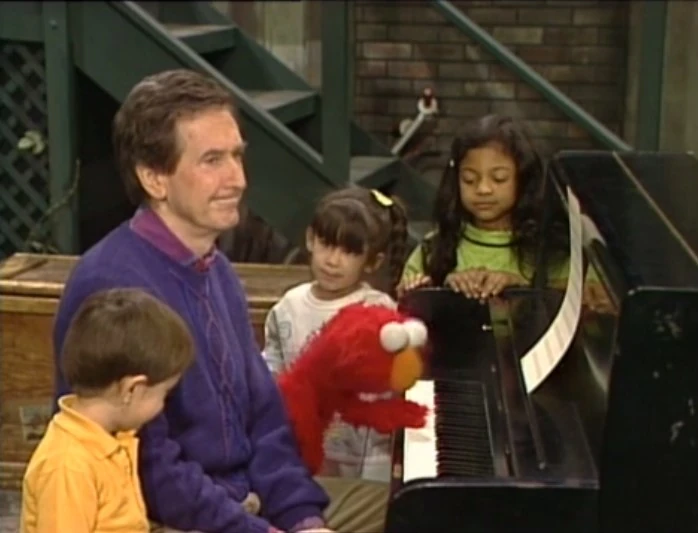 SCENE 1 | Bob plays a musical exercise with Elmo and the kids, having them sing the notes he plays on the piano. Elmo gives it a try and plays a complicated, unfocused arrangement just for Bob to repeat. |
