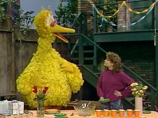 SCENE 1 | Gina explains to Big Bird that the party set up out in the yard is for Maria's baby shower, and invites him and Mr. Snuffleupagus to come. Though Gina says it's okay that he doesn't have to bring something, he insists on getting Maria a gift... but what will it be? |