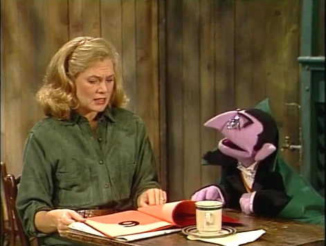 Muppets / Celebrity | The Count approaches actress Kathleen Turner, and asks her to be in a movie that he's written. The script is called Counting, and it's just a list of the numbers 1 through 20. Kathleen is unsure if she wants to participate, so the Count shows her the script for the sequel, More Counting. This script counts from 21 to 40. Kathleen declines the role, but the Count doesn't mind; he's been counting the leading ladies who have turned him down! (First: Episode 2570) |