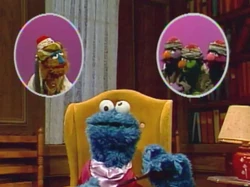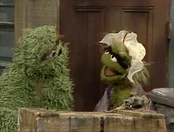 SCENE 3 | Oscar continues his lesson when he sees Grundgetta and Maria strolling past having a nice conversation; Grundgetta's even wearing the baby's bonnet for fun. The Groucketeers surround Grundgetta and give her the Heimyuck maneuver, snapping her out of her pleasant demeanor. |