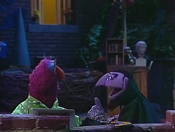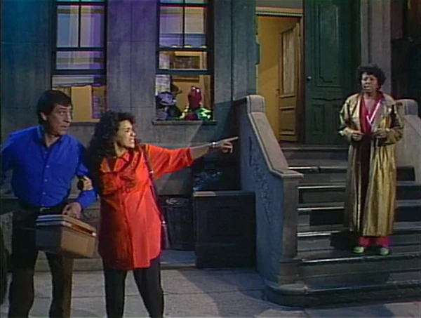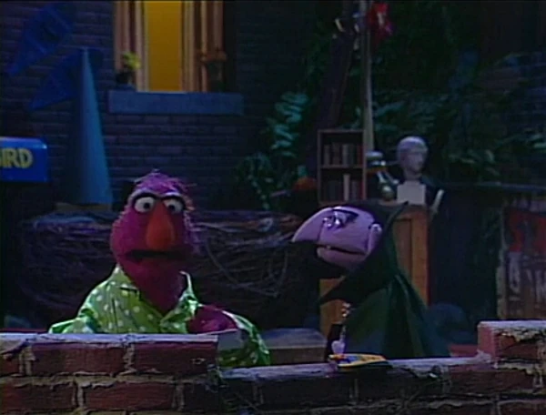 SCENE 2 | Telly and the Count have slept over at Gordon and Susan's apartment and are excited to learn that the baby is finally coming; Oscar is awakened as well by all the fuss. Gordon and Luis go to fetch the car while Susan stays with Maria and the others. Maria suggests that since they can't get back to sleep, the Count and Telly can work on a picture for her to look at later while giving birth. Oscar suggests the two bug Big Bird for some drawing supplies. |
