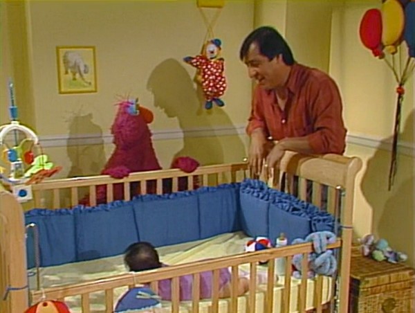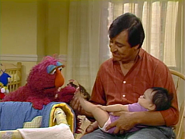 SCENE 5 | Telly makes sure Gabi knows the difference between her arms and legs, hoping she doesn't grow up trying to walk on her arms instead. Luis tells him that's not necessary, as she will naturally learn what her arms and legs are for as she grows up. Telly does note another thing arms are good for - hugging. |