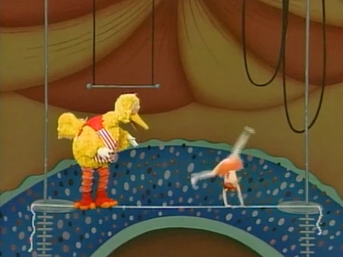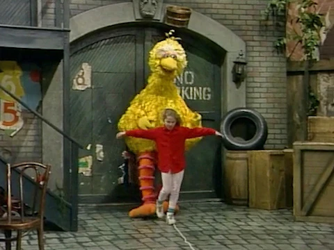 SCENE 1 | Big Bird and Anna look for some fun to have, as virtually everyone on the street isn't around. They find a discarded piece of rope and have fun pretending it's a tightrope to walk across in the circus. |