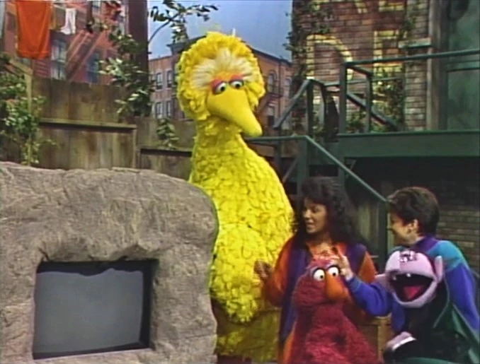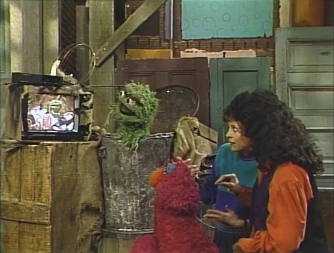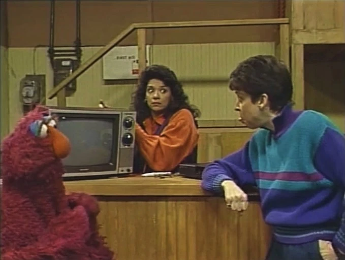 SCENE 1 | Linda is angry because her television set at the Fix-It Shop won't be fixed until tomorrow. After she leaves in a huff, Maria explains to Telly that Linda just got a new closed-caption decoder, which will enable her to understand what they say on television for the first time, but with a broken set she can't use it. Telly doesn't understand how it works, so Maria imitates what TV looks like for Linda with and without closed captioning, using an old TV frame and a written message for the text. Telly sees how important the decoder is for someone who is deaf, and leaves to try and borrow Oscar's television for Linda. |