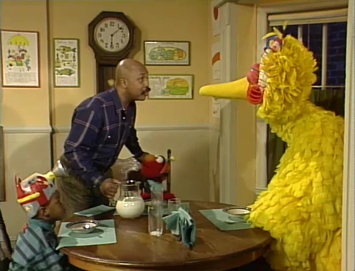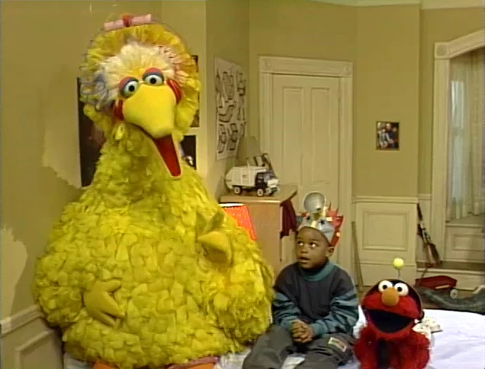 SCENE 1 | In Miles' room, he, Elmo, and Big Bird play pretend astronauts. Elmo really wants to get to the moon, but their countdown is constantly interrupted when Big Bird stops to explain what they're doing. Just when everyone is finally ready, Susan calls them out for dinner. She suggests the astronauts countdown and blast off to the dining room. |