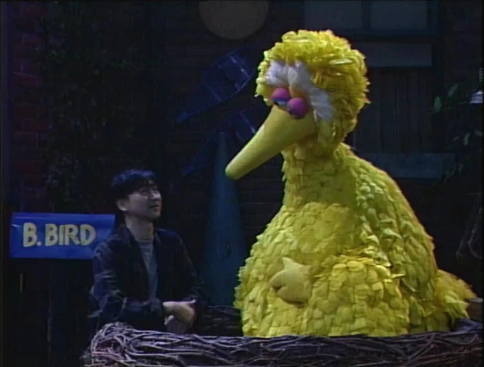 SCENE 7 | Hiroshi observes the mess caused by the fire, when he hears Big Bird (in his sleep) calling out for Gordon and Susan. Hiroshi confirms that everybody involved with the fire is safe and sound since they had planned what to do in an emergency. Big Bird asks Hiroshi to stick around until he falls back to sleep, so he climbs into the nest to keep him company. Maria announces the sponsors. |