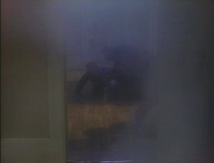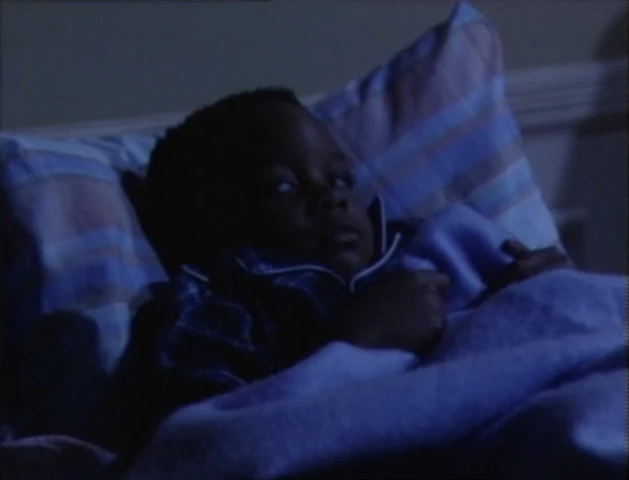 Back in Miles' room, he hears the smoke alarm go off and through his thoughts, remembers what to do when there's a fire (having learned the measure in a previous episode). He carefully crawls out of his room, joining his parents who do the same. |