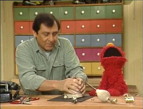 SCENE 2 | Elmo visits the Fix-It Shop, where Luis reinserts a rod into a broken lamp. Elmo figures that it is an important piece and causes Luis to break it further with his exclamations. He apologizes, and Luis tells Elmo that it would be important to him if he were quieter. |