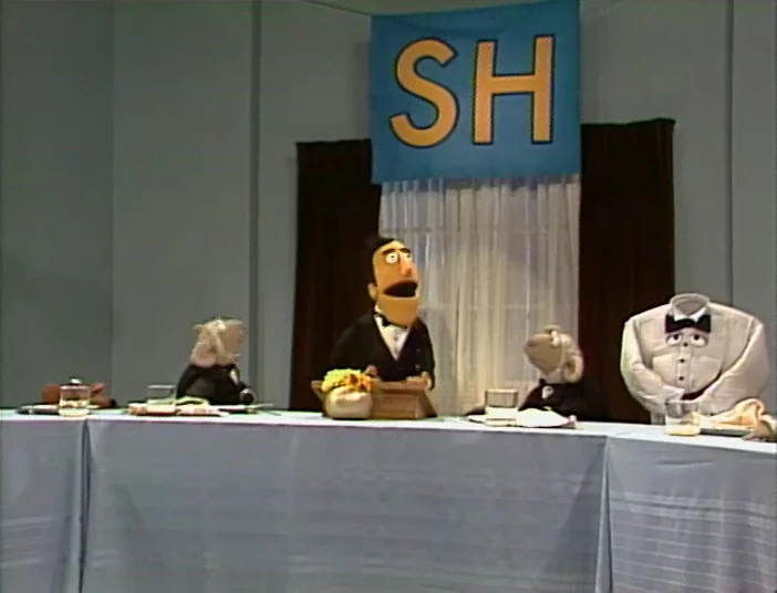 Muppets | Guy Smiley hosts a dinner for all things that begin with the sound SH. Guests include a shirt, a shrieking shovel, a shepherd, and a shark. (First: Episode 2564) |