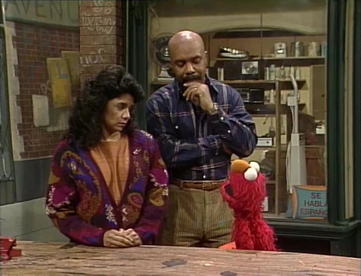 SCENE 6 | On another city block, Maria and Gordon run into each other. They realize Elmo has been saying "no" a lot and acting strange and decide to see what the problem may be. |