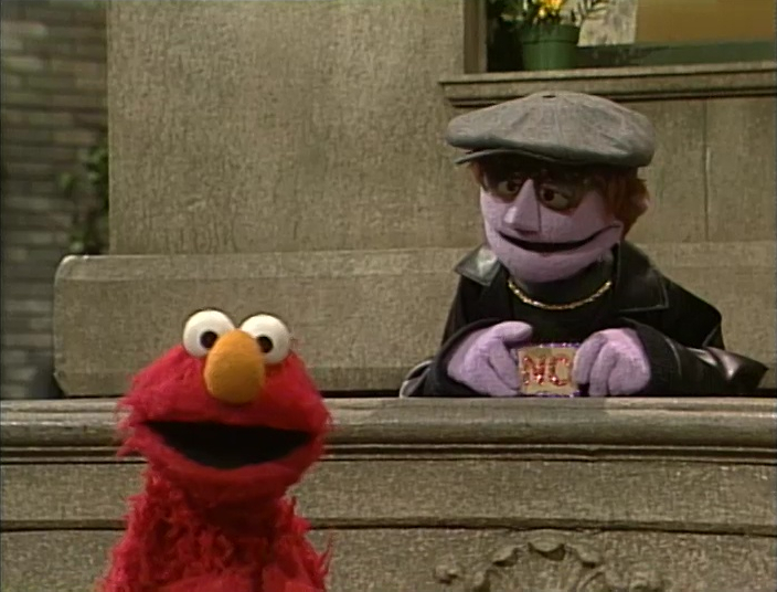 SCENE 3 | On his way to Hooper's, Elmo runs into Smelly Tavales, a word salesman. He gives Elmo a first-time, pro-bono word - "NO," and encourages Elmo to say it all the time. "Take my word for it, kid, it'll change your whole life," he says. Elmo begins repeating the word as he continues his trek. |