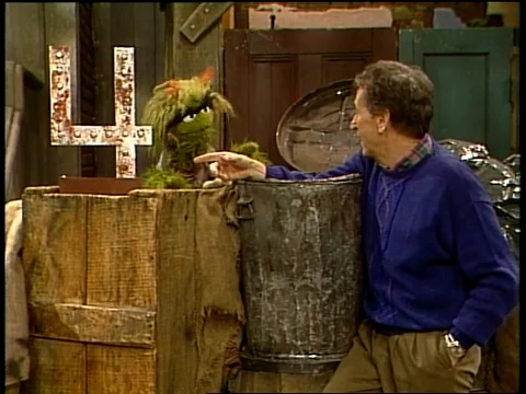 SCENE 1 | Bob assists Grundgetta in setting up a large, rusty, metallic number 4 by Oscar's trash can. She introduces the number as four Grouchketeers emerge from the trash can. |
