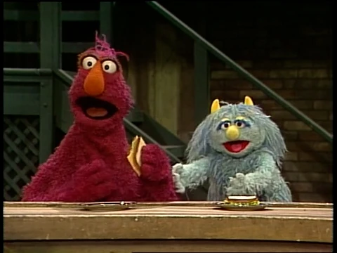 Muppets | Two-Headed Monster: Milk Carton β After drinking cartons of milk, the monster reuses the cartons as toy trains. |