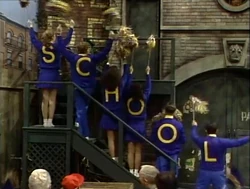 SCENE 1 | Everyone dresses like a cheerleader, as Little Chrissy and the Alphabeats sing "I Go to School." |