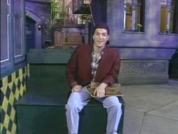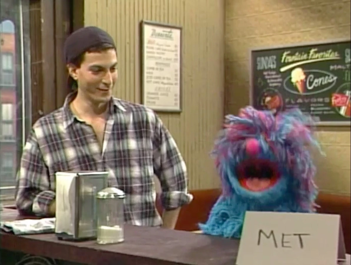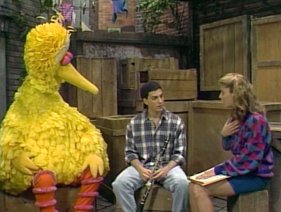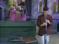 SCENE 1 | In the early morning, a nervous young man named Dan (Steven Schub) walks down Sesame Street and sits outside Hooper's Store, waiting to begin his part-time employment there. He meets a curious Honker, who wants to know what's in the small box he's carrying. Dan shows him it's a clarinet, and invites the Honker to play a song with him. Even though the Honker can't read music they both have fun, and Dan remarks to the viewer, "I have a feeling this isn't your ordinary street." |