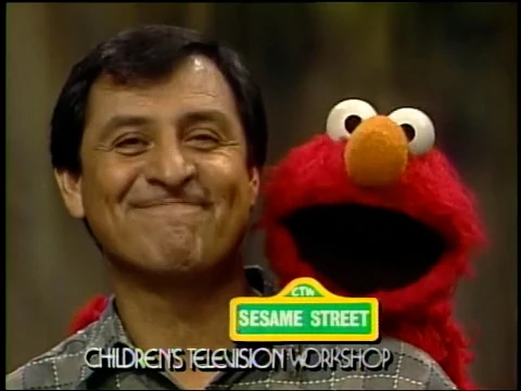 SCENE 7 | Elmo's piggyback ride has finished, and he hopes one day he can be a little like Luis when he's older. Elmo then announces the sponsors (which appear in his mouth). |