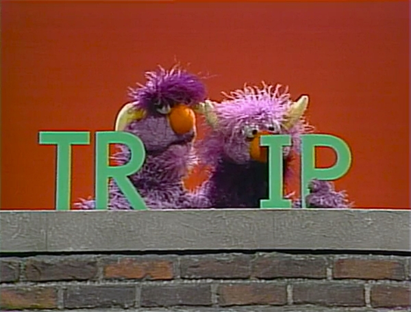 Muppets | Two-Headed Monster: Trip β The monster trips over the parts of the word "trip." (First: Episode 2721) |
