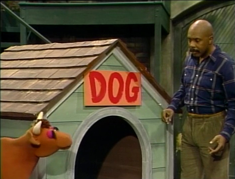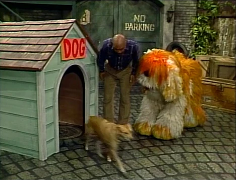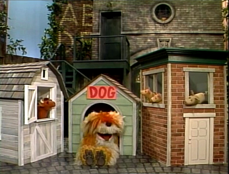 SCENE 3 | Gordon has put together a doghouse for Barkley. A pig named Porkchester mistakes it for a pighouse, then a cow mistakes it for a cowhouse (despite the "DOG" sign on it). Barkley appears to see his new doghouse, when several dogs run out from inside. |