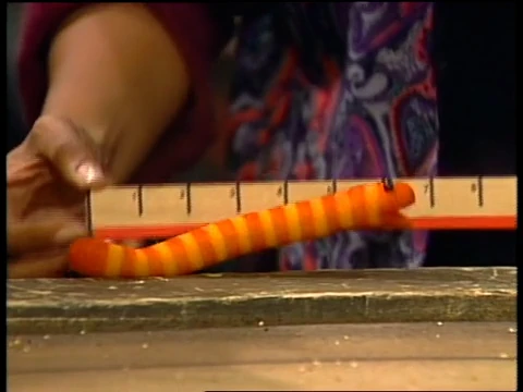 SCENE 3 | Big Bird and the kids measure Big Bird's birdfeeder and toy car, after having been taught how to use a ruler by Maria. They try to measure Slimey and at first find he's seven inches long, but they can't get an accurate and consistent number because he keeps squirming around. Big Bird concludes that he's "however long he wants to be." |