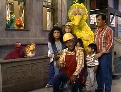 SCENE 6 | Telly, a Honker, a Dinger, a duck, Big Bird, and the kids gather to see the rubble Hooper's has become. Maria and Luis return with their wood and are shocked to see what's happened. Everyone offers to help Mr. Handford fix things up and he momentarily considers closing the store for good. They all convince him what an important fixture the store (and he) is to the neighborhood. Mr. Handford starts getting into the idea of having a new store and everyone starts making suggestions. Biff announces the sponsors. |