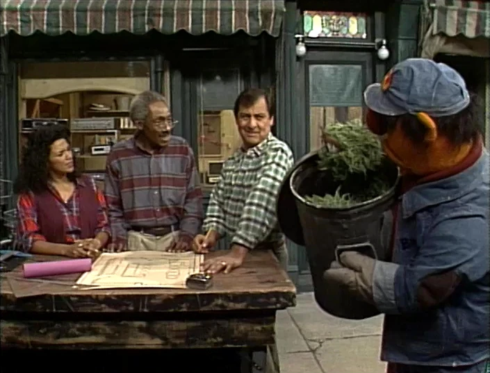 SCENE 5 | Big Bird finds Mr. Handford enjoying the construction sounds going on outside the store. Big Bird doesn't understand why Mr. Handford considers it "music to [his] ears," until Mr. Handford points out that it's all for his new store, which makes him very happy. Oscar announces the sponsors. |